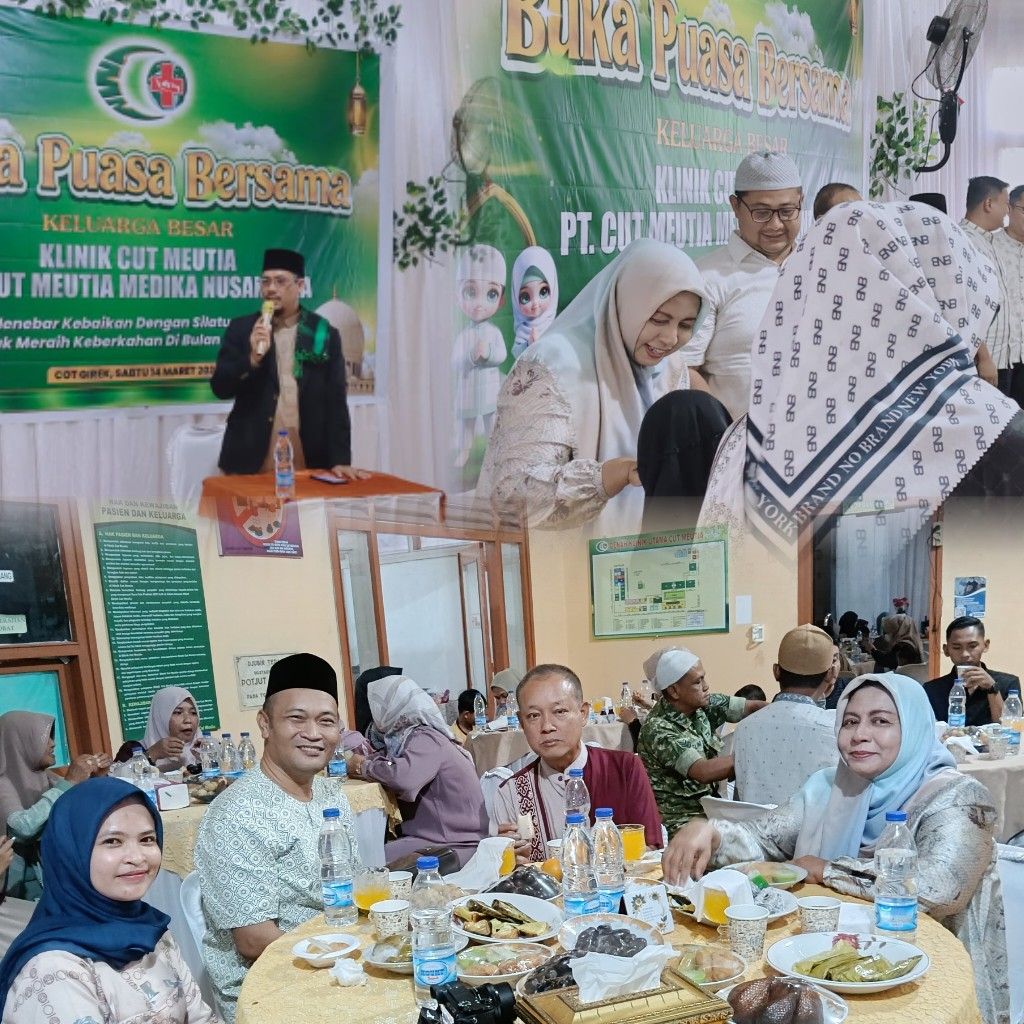 Aceh Utara – Klinik Utama Cut Meutia (KUCM) dan Klinik Cut Meutia II Cot Girek di bawah naungan PT Cut Meutia Medika Nusantara (PT CMN) menggelar kegiatan buka puasa bersama mengusung tema “Menebar Kebaikan dengan Silaturahmi untuk Meraih Keberkahan di Bulan Ramadan”., di ruang tunggu rawat jalan KUCM Cot Girek, Sabtu (14/3/2026).