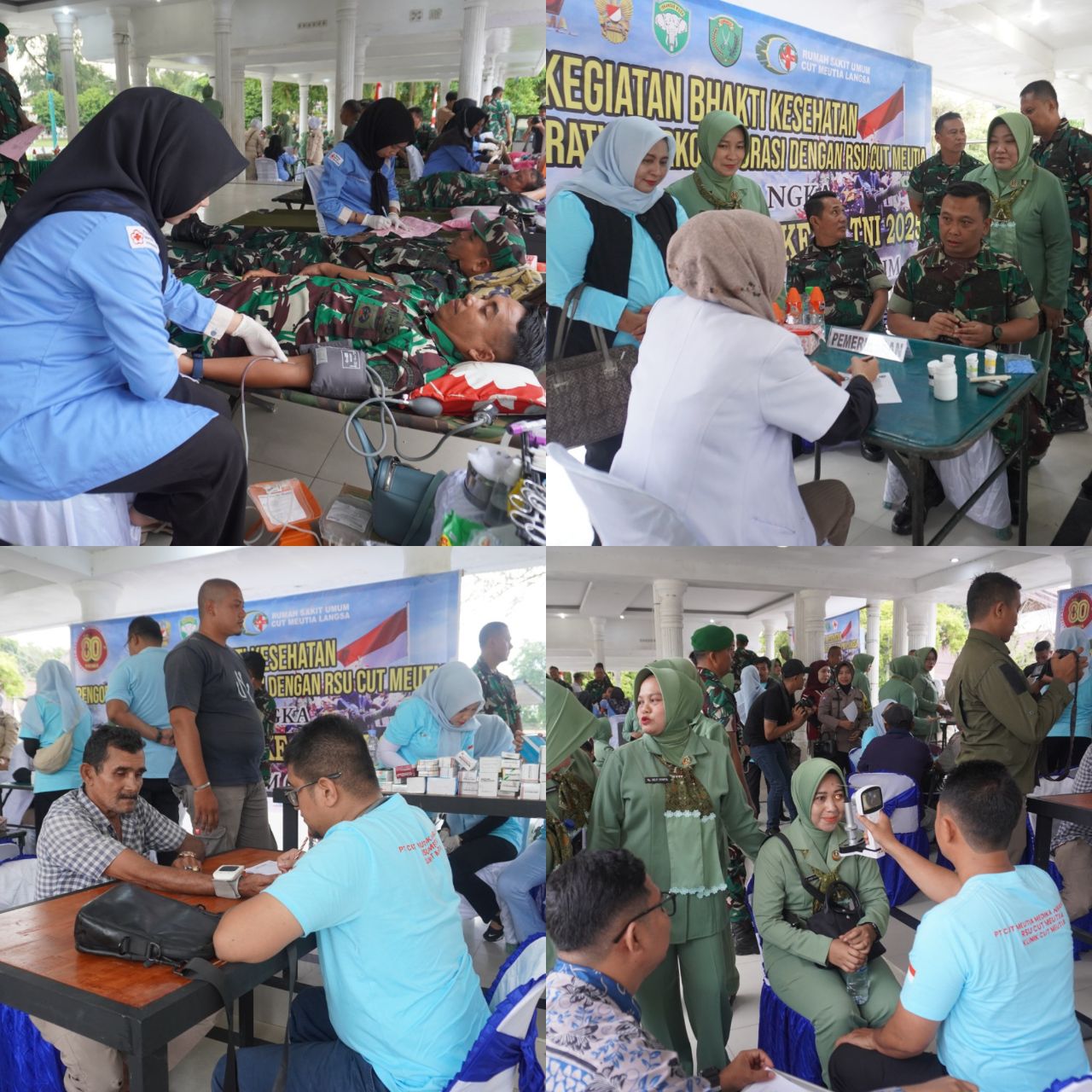 Langsa – Memperingati Hari Ulang Tahun (HUT) ke-80 Tentara Nasional Indonesia (TNI), Kodim 0104/Aceh Timur (ATIM) berkolaborasi dengan PT Cut Meutia Medika Nusantara (PT CMN) menggelar kegiatan Bhakti Kesehatan Donor Darah dan Pemeriksaan Kesehatan Gratis di Tribun Lapangan Merdeka, Kota Langsa. Sabtu (20/09/2025).